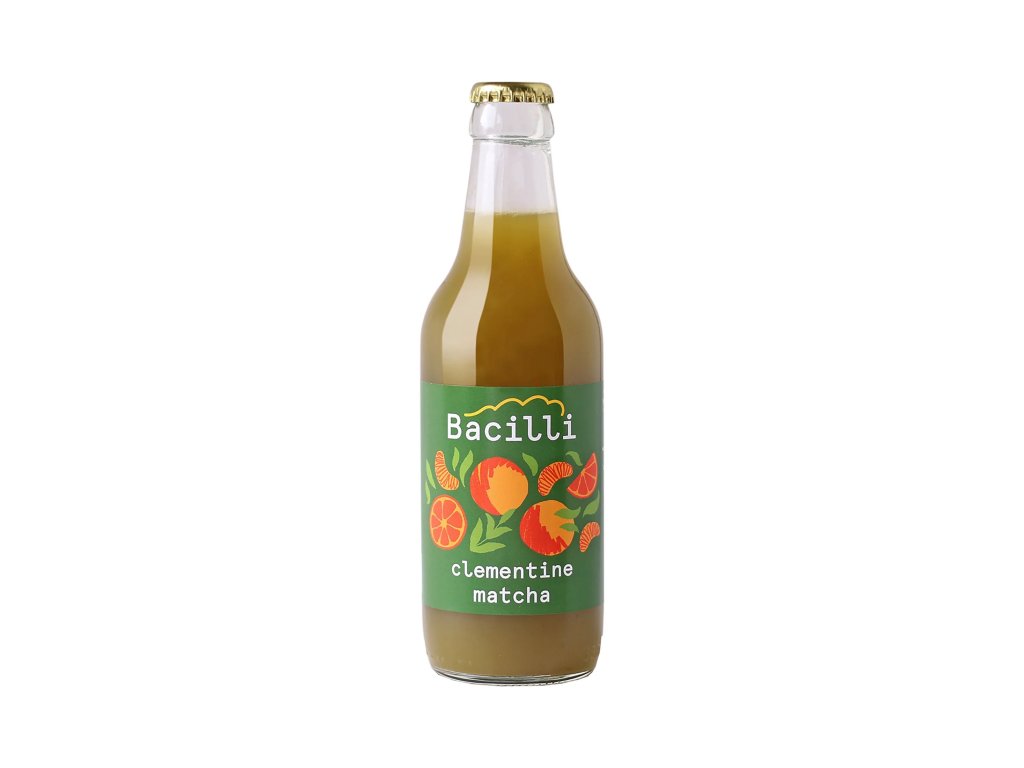 Voda, mandarinková šťáva* 12 %, zahuštěná jablečná šťáva*, citrónová šťáva*, zelený čaj matcha* 0,25 %, oxid uhličitý, probiotické kultury. *produkt kontrolovaného ekologického zemědělství