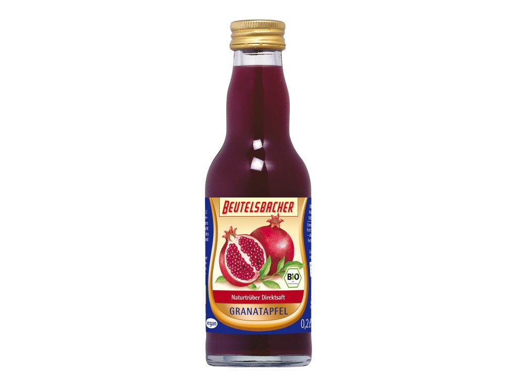 Pro svou dlouhověkost a stovky semínek v plodu symbolizoval granátovník ve staré Persii věčné mládí a plodnost. Šťáva se lisuje z čerstvých plodů granátových jablek a používáme ji do koktejlů, džusů, salátů a k masu.. Je šťáva vhodná pro vegany? Někteří výrobci po vylisování šťávy filtrují přes želatinu. Beutelsbacher při výrobě želatinu NEPOUŽÍVÁ a šťávy této značky jsou tudíž vhodné i pro striktní vegany.. Co to je přímé lisování? Běžné džusy jsou vyráběny z koncentrátu, který se vyrábí odpařováním vylisované šťávy. Takto zahuštěný džus je levnější na přepravu a skladování. Před plněním do konečného obalu se koncentrát naředí vodou. Zahušťování má negativní vliv jak na obsah vitamínů, tak na chuť džusu. Džusy z přímého lisování se získávají lisováním čerstvého ovoce a okamžitým stáčením vylisované šťávy. Džus se poté pasterizuje krátkým šetrným zahřátím, které zajistí mikrobiologickou nezávadnost džusu. Pasterizovaný džus se nemusí skladovat až do chvíle otevření v ledničce. Rozdíl mezi džusem z koncentrátu a džusem z přímého lisování je patrný na první doušek - ochutnejte!.