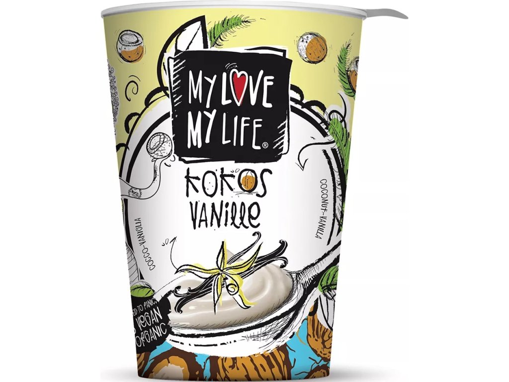 SLOŽENÍ: kokosová složka* 79 % (voda, kokosová dužnina* 24 %), cukr*, škrob*, stabilizátor karobová moučka*, výtažek z vanilky*, Bourbon vanilka*, zahuštěná citrónová šťáva*, sůl, probiotické kultury. Složky označené * pocházejí z kontrolovaného ekologického zemědělství.