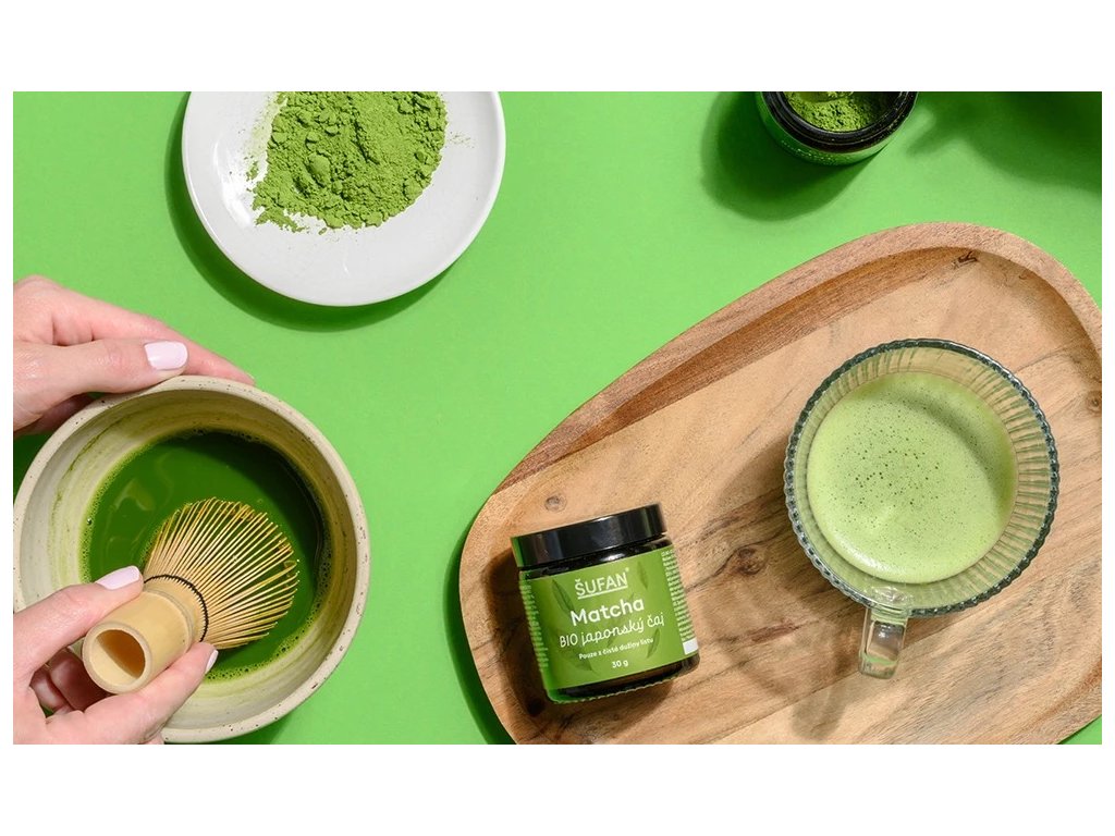 Jemně mletý Japonský BIO zelený čaj Matcha 100 %.