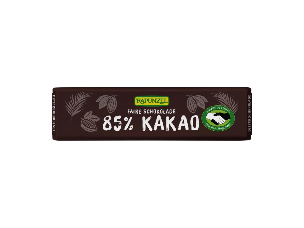 Extra hořká čokoláda s velmi vysokým obsahem kakaa 85 %. Čokoláda je vyráběna tradičním postupem a pro její výrobu bylo použito kakao z Bolívie a přírodní třtinový cukr Cristallino. Obě tyto složky pocházejí z fair trade projektu HAND IN HAND. Fair trade - spravedlivý obchod garantuje farmářům z rozvojových zemí spravedlivou odměnu a zakazuje otrockou a dětskou práci.