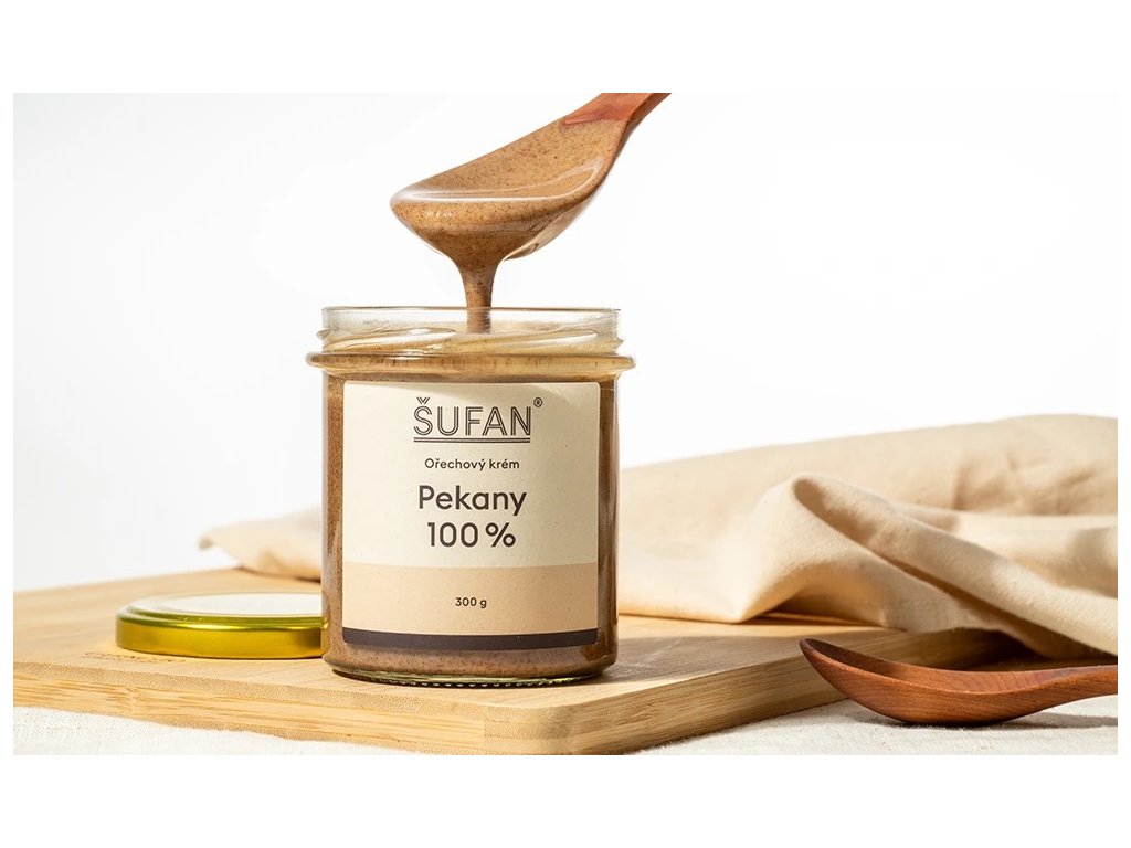 Aby kvalitní pekanové máslo spatřilo světlo světa není jen tak! U nás v Šufanu naštěstí víme, jak na to. Křehké a na zdravé tuky bohaté pekanové ořechy dovážíme nejčastěji z USA, případně Mexika, a sami si je šetrně za nízkých teplot pražíme. Během pražení nezapomínáme na kontroly, abychom dokázali jejich chuť vyladit k dokonalosti. Nic se nesmí uspěchat. Po upražení pekany už jen rozemeleme, aby vzniklo dokonale jemné a krásně roztíratelné máslo, s kterým je v kuchyni radost tvořit.